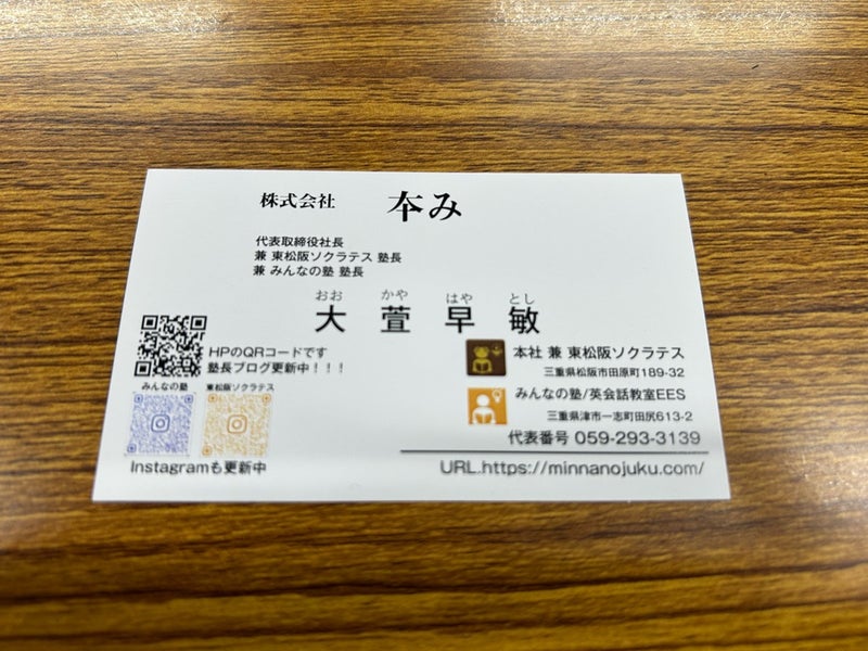 れいめい塾のブログで自分の新しい名刺を紹介していただいた