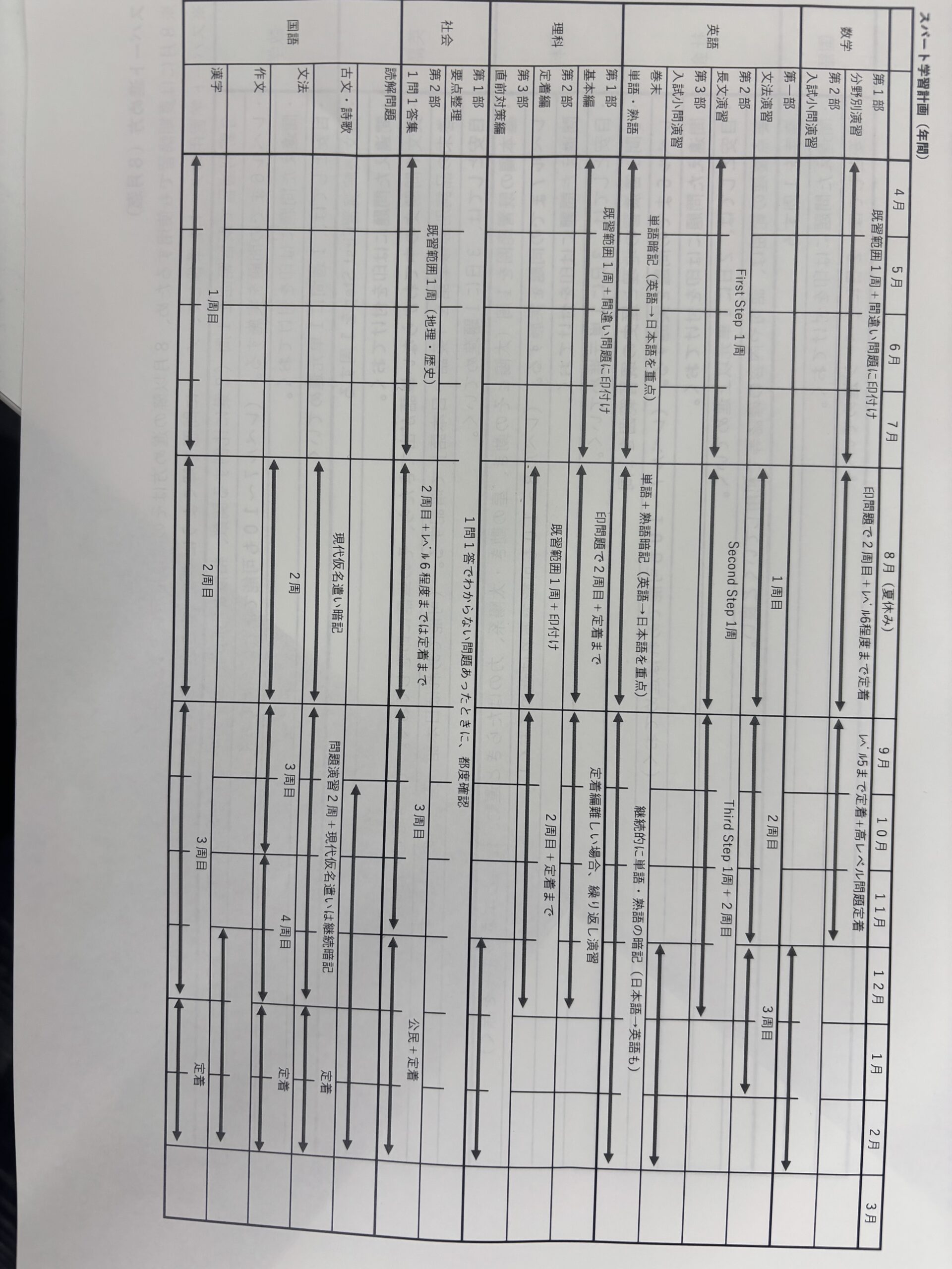 また、全塾生に英語検定の配布と中3生には受験勉強計画表を配布した